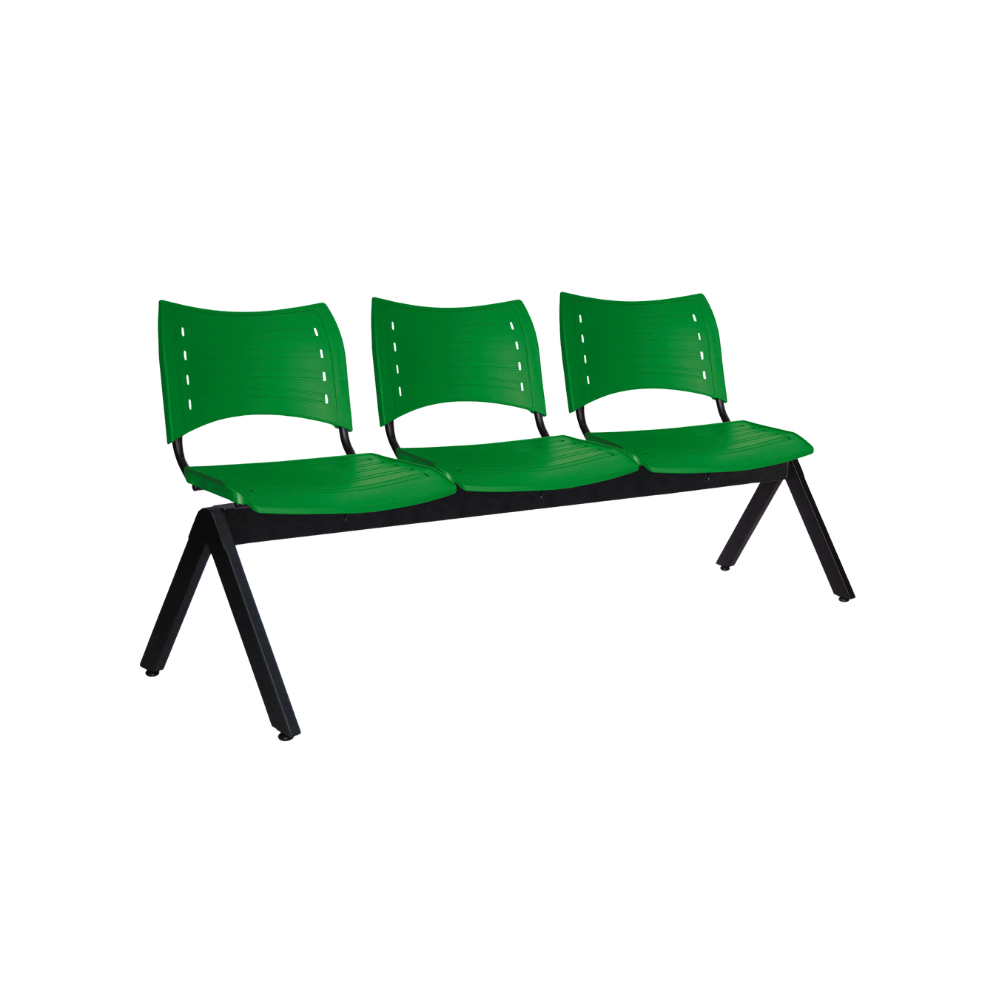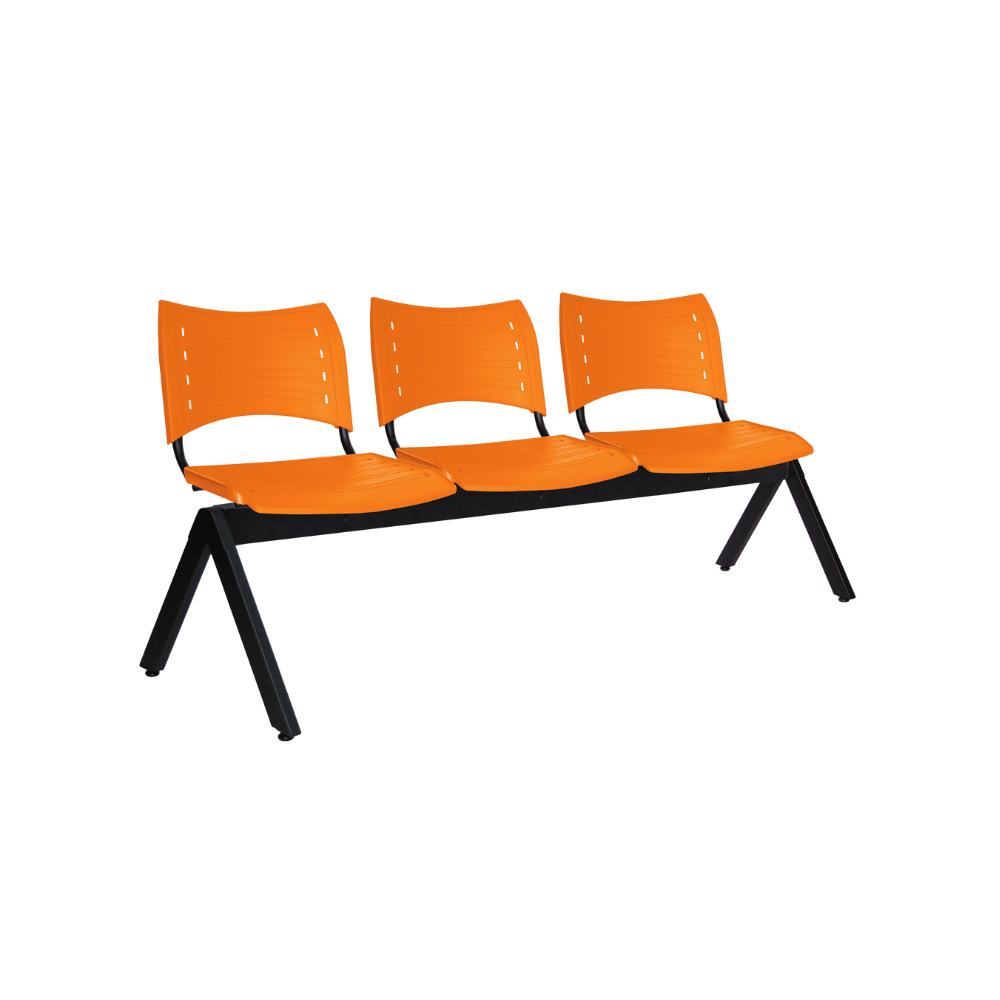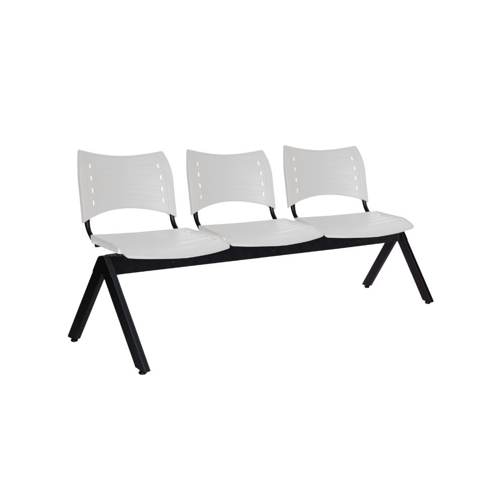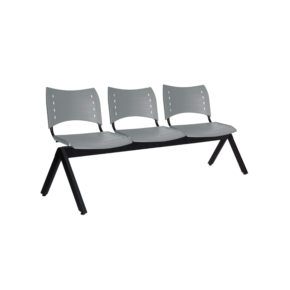 Estructura: de acero tubular rectangular de 1 1/2" X 3", calibre 16, asientos y respaldos de perfil redondo tubular ponchado de acero con travesaños separadores tubulares redondos de acero con acabado de pintura epóxica (electrostática) color negro.