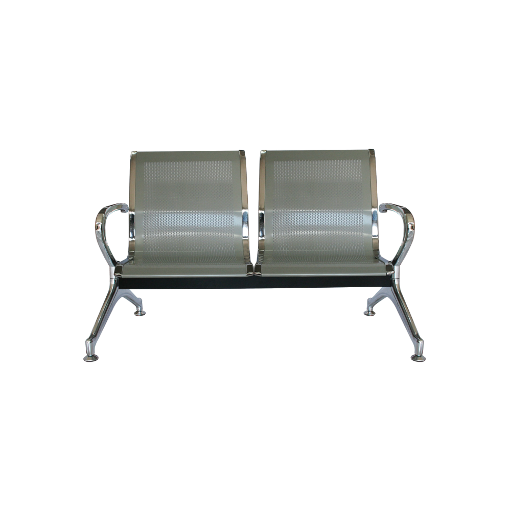 Asiento y respaldo: de lámina de acero troquelada perforada, calibre 16; con acabado de pintura epóxica (electrostática) color plata. Ensamblado en bastidor de acero tubular rectangular.