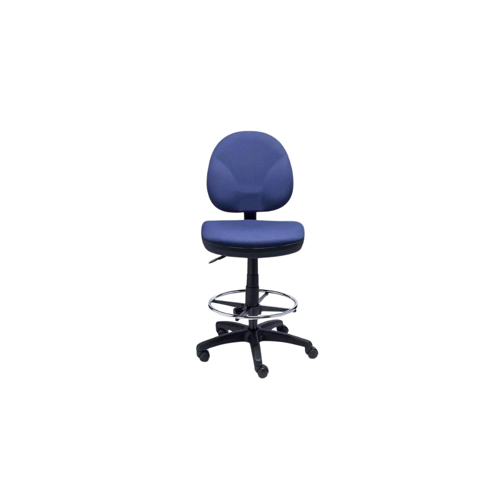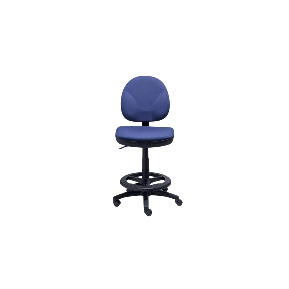 Silla de trabajo versión banco alto con diseño ergonómico. Cuenta con ajuste de altura y profundidad en el respaldo, además de un aro descansa pies. Compatible también con ciertos accesorios; descansa brazos fijos o ajustables, entre otros.