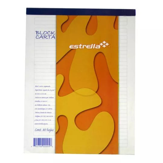 BLOCK DE RAYA ESTRELLA TAMAÑO CARTA DE 80 HOJAS 0005