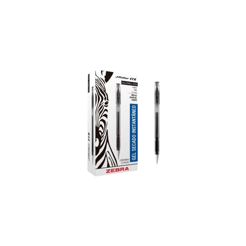 BOLÍGRAFO TINTA GEL J ROLLER RX ZEBRA FINO 0.5MM TINTA NEGRA CAJA CON 12 PIEZAS 8600