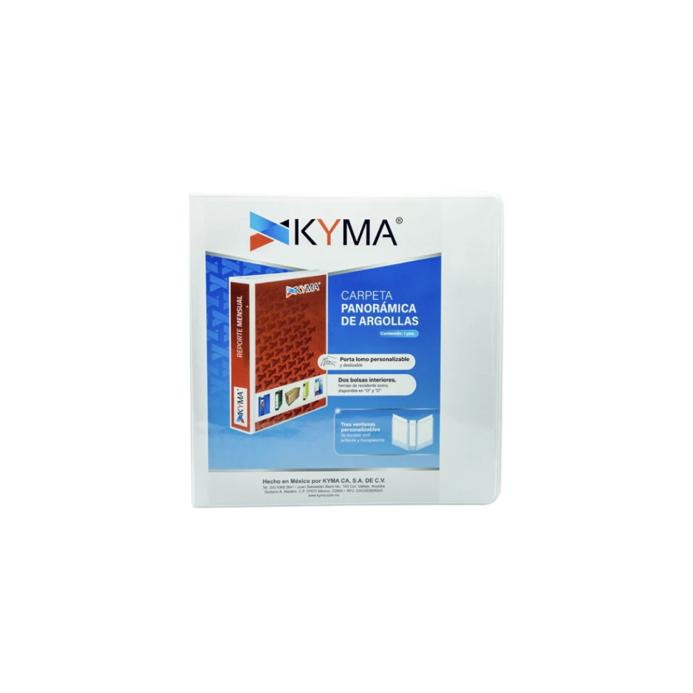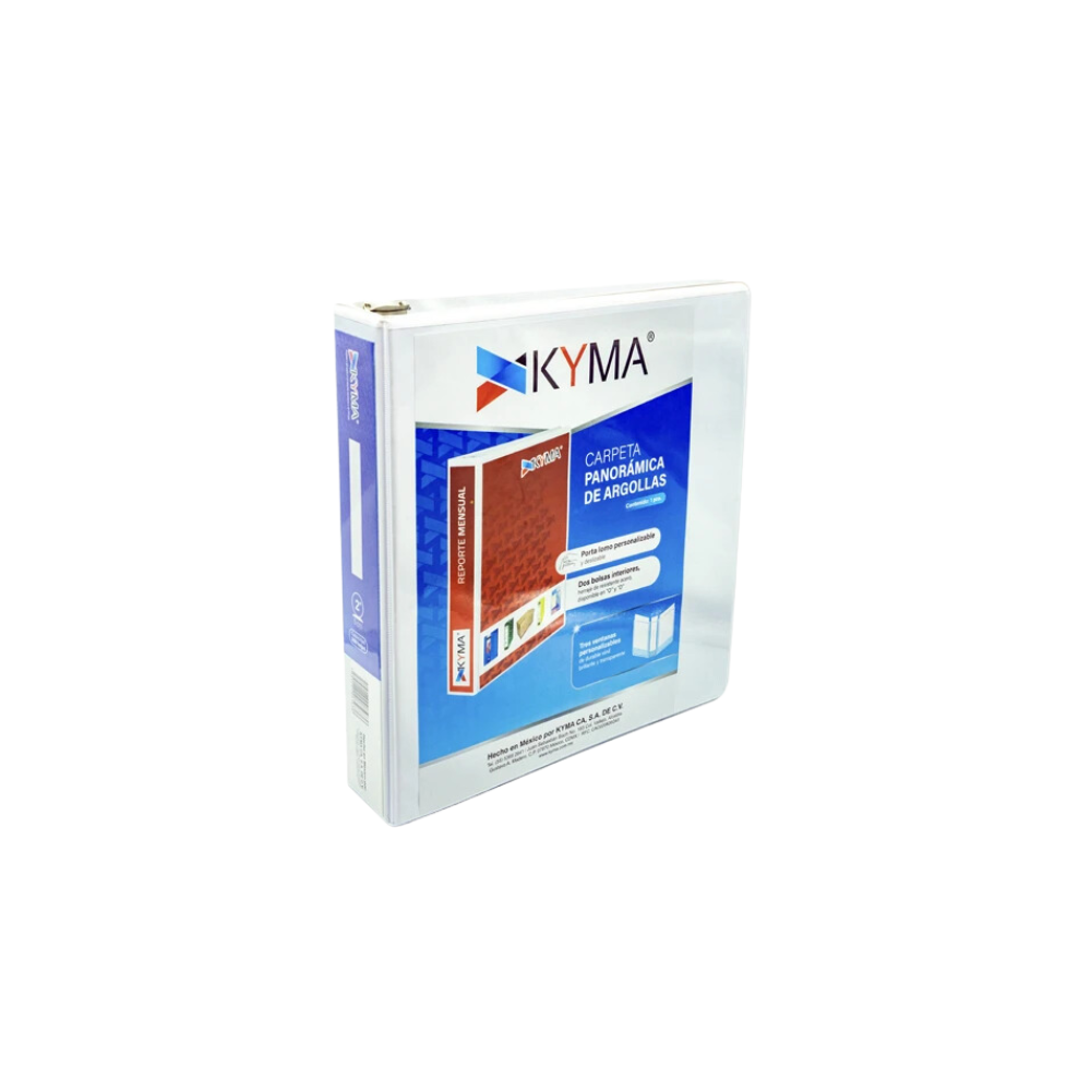 CARPETA DE VINIL PANORÁMICA BLANCA 2 PULGADAS KYMA ARILLO EN O CARTA PARA 400 HOJAS CPKCBHO-200-BCO