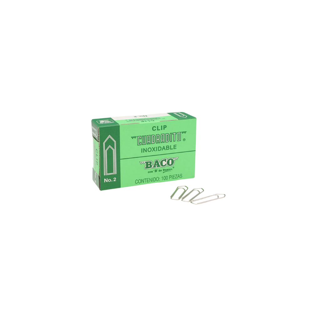 CLIP CUADRADO NÚMERO 2 BACO CAJA CON 100 CLIPS PTCLA0012