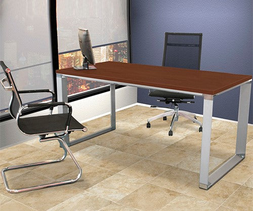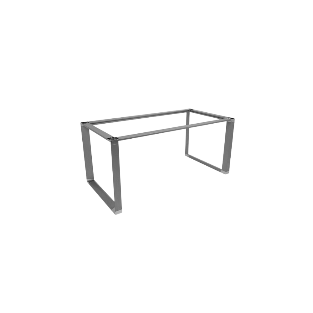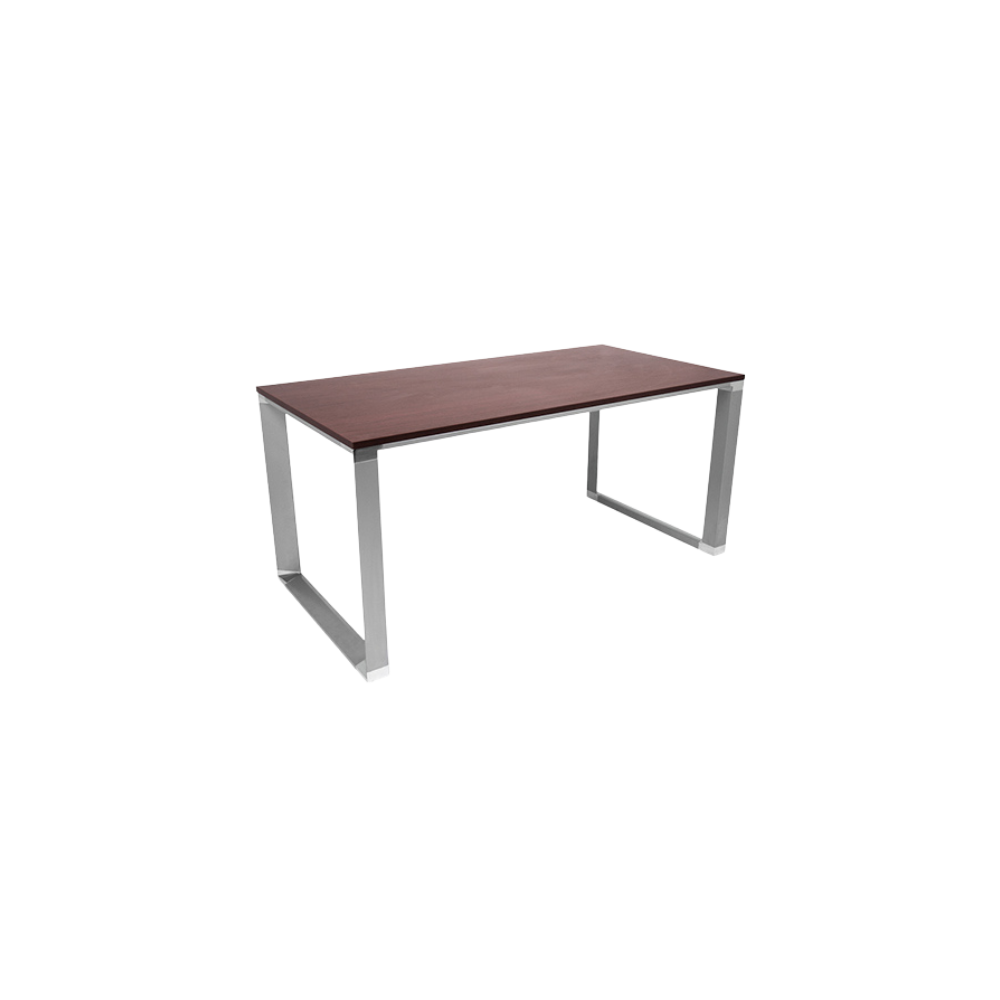 Estructura: escritorio metálico con esquinas cromadas, en color negro o gris.