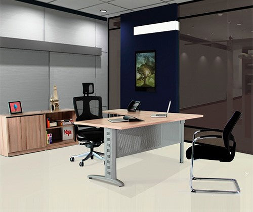 Estructura: escuadra con esquinero metálico con faldón y larguero, disponible en color negro y gris.