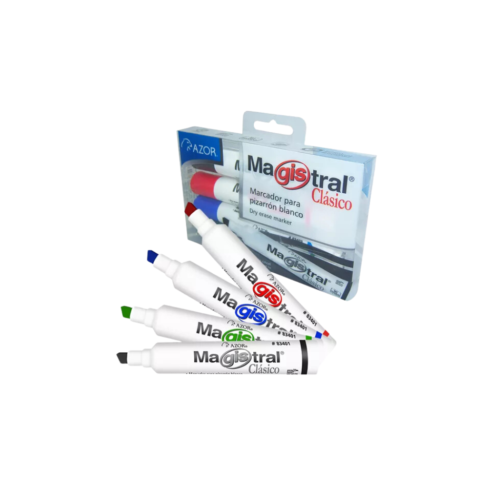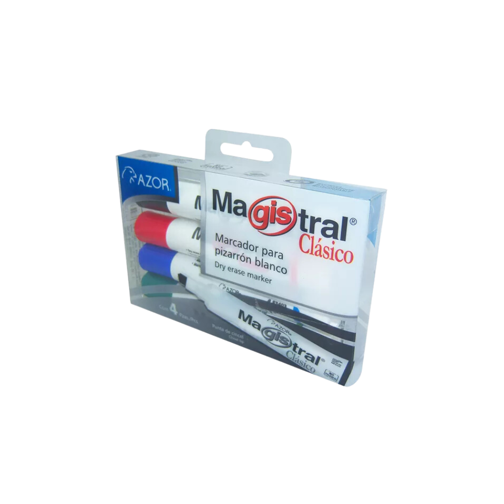 MARCADORES PARA PIZARRÓN AZOR MAGISTRAL CLÁSICO 1 PAQUETE CON 4 PIEZAS 301.83474