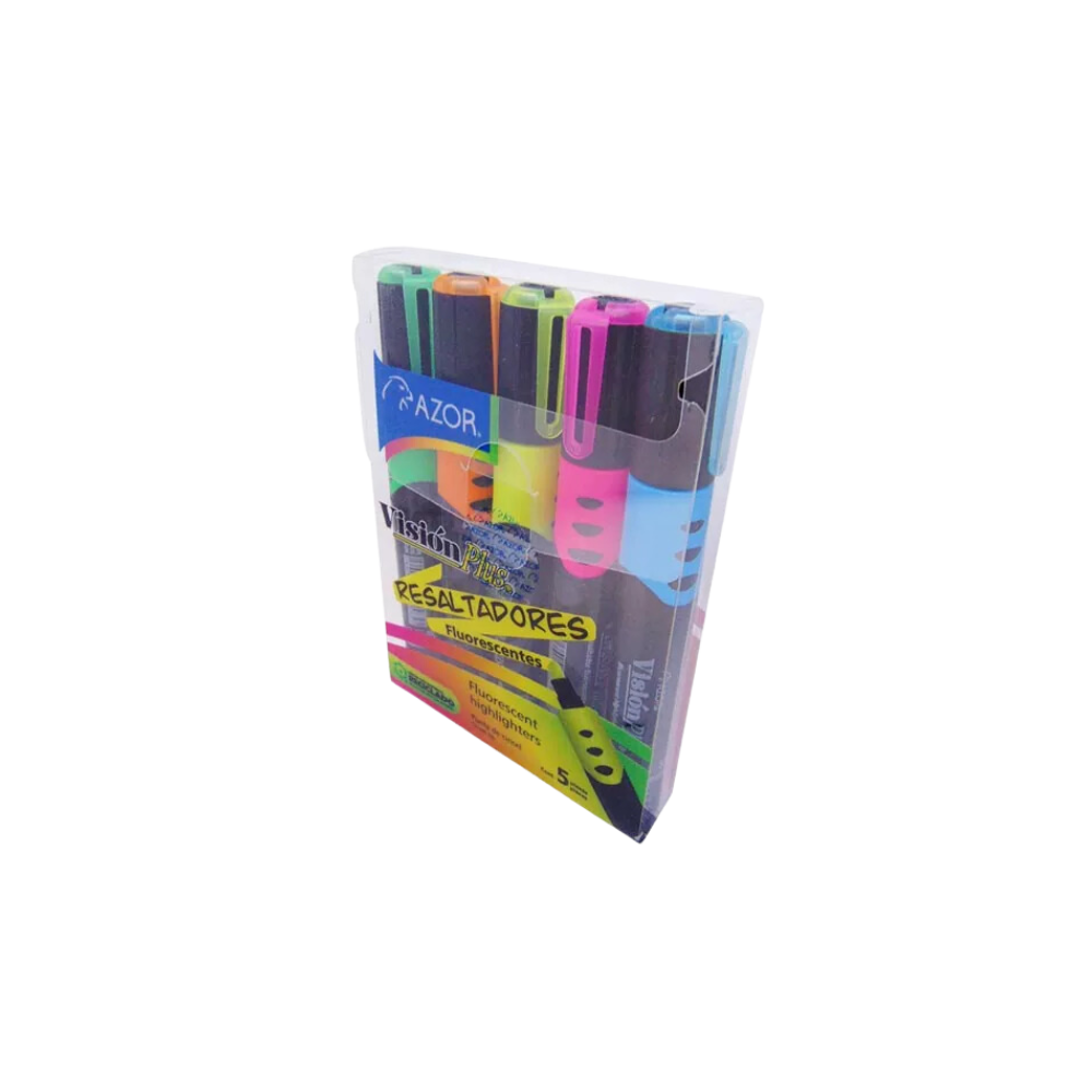 MARCADORES RESALTADOR AZOR VISIÓN PLUS PAQUETE CON 5 PIEZAS 301.2625