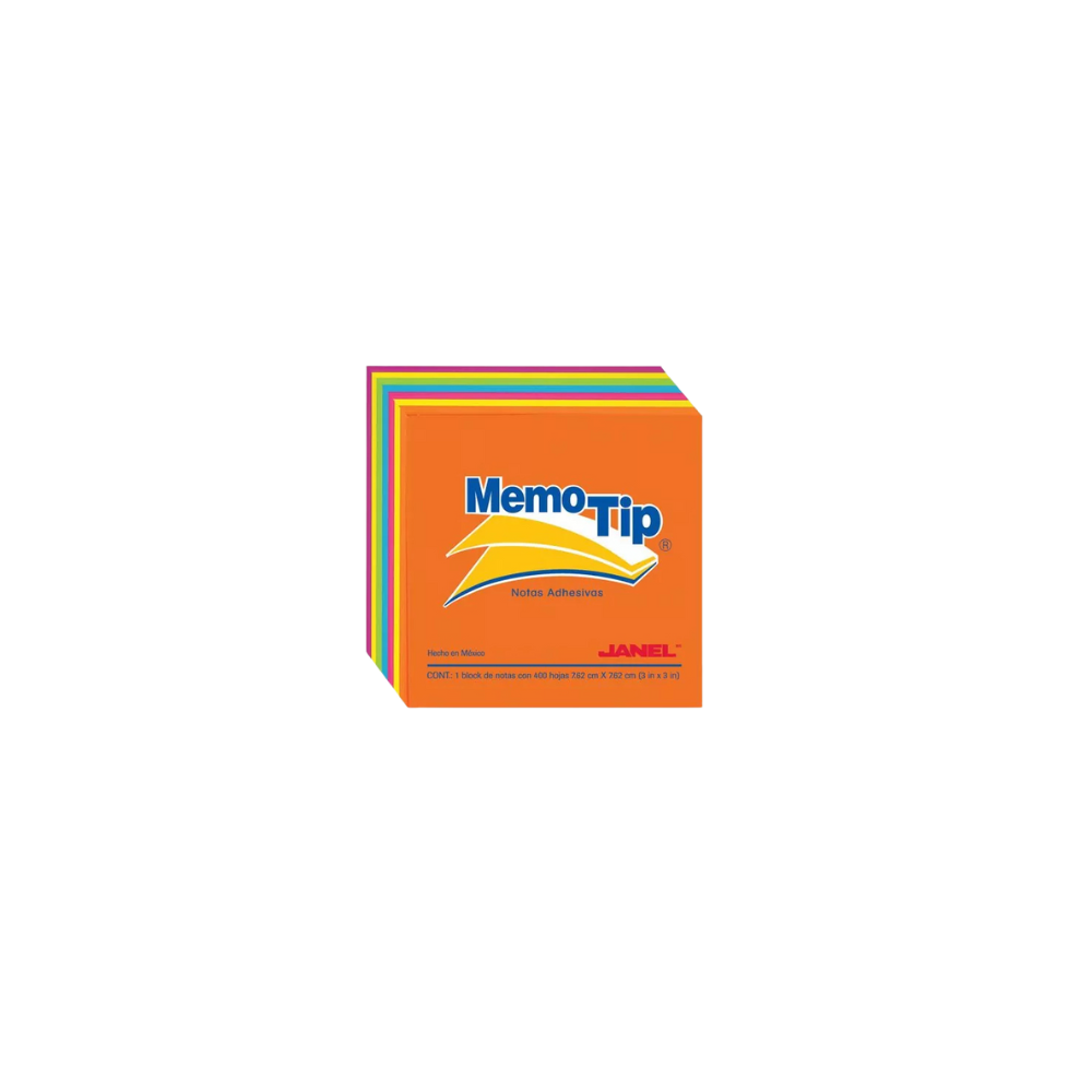 NOTA ADHESIVA REMOVIBLE JANEL MEMOTIP COLORES NEÓN FORMA CUADRADA 400 HOJAS 6590303197