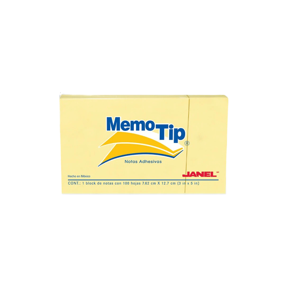 NOTAS ADHESIVAS JANEL COLOR AMARILLO 100 HOJAS ADHESIVO REPOSICIONABLE 7.62 X 7.62 CM 6560303704