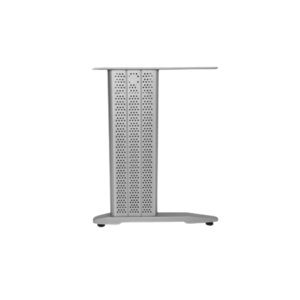 Estructura: pata metálica compuesta de 3 partes; base, columna con rejilla pasacables y soporte para cubierta.