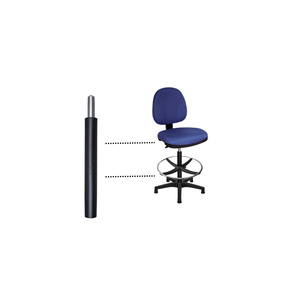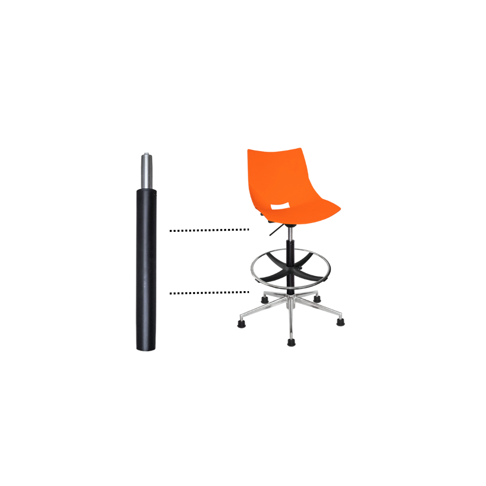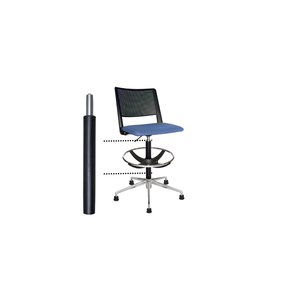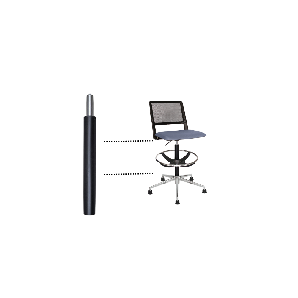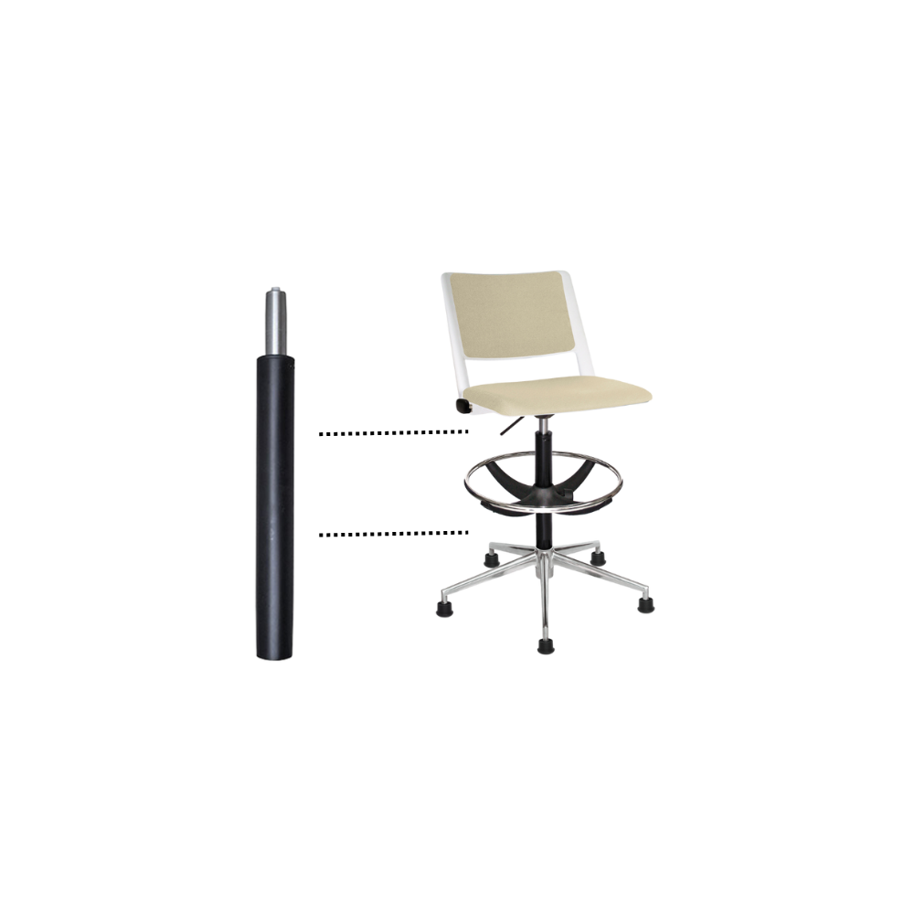 Pistón: pistón neumático que permite ajustar la altura del asiento, con terminado en cromo.