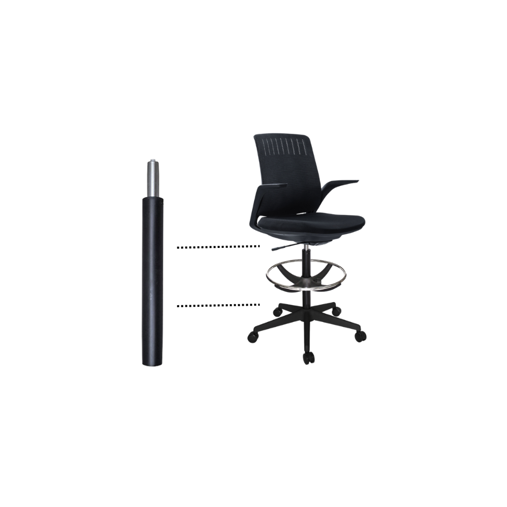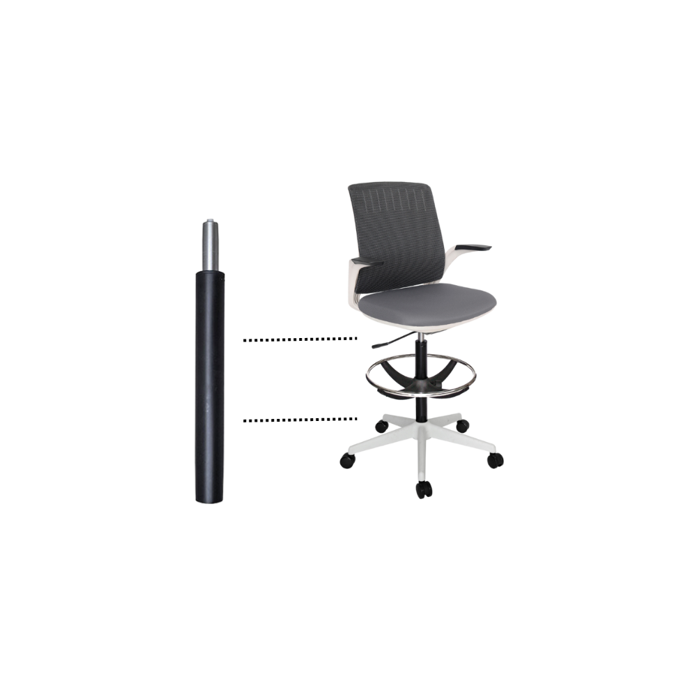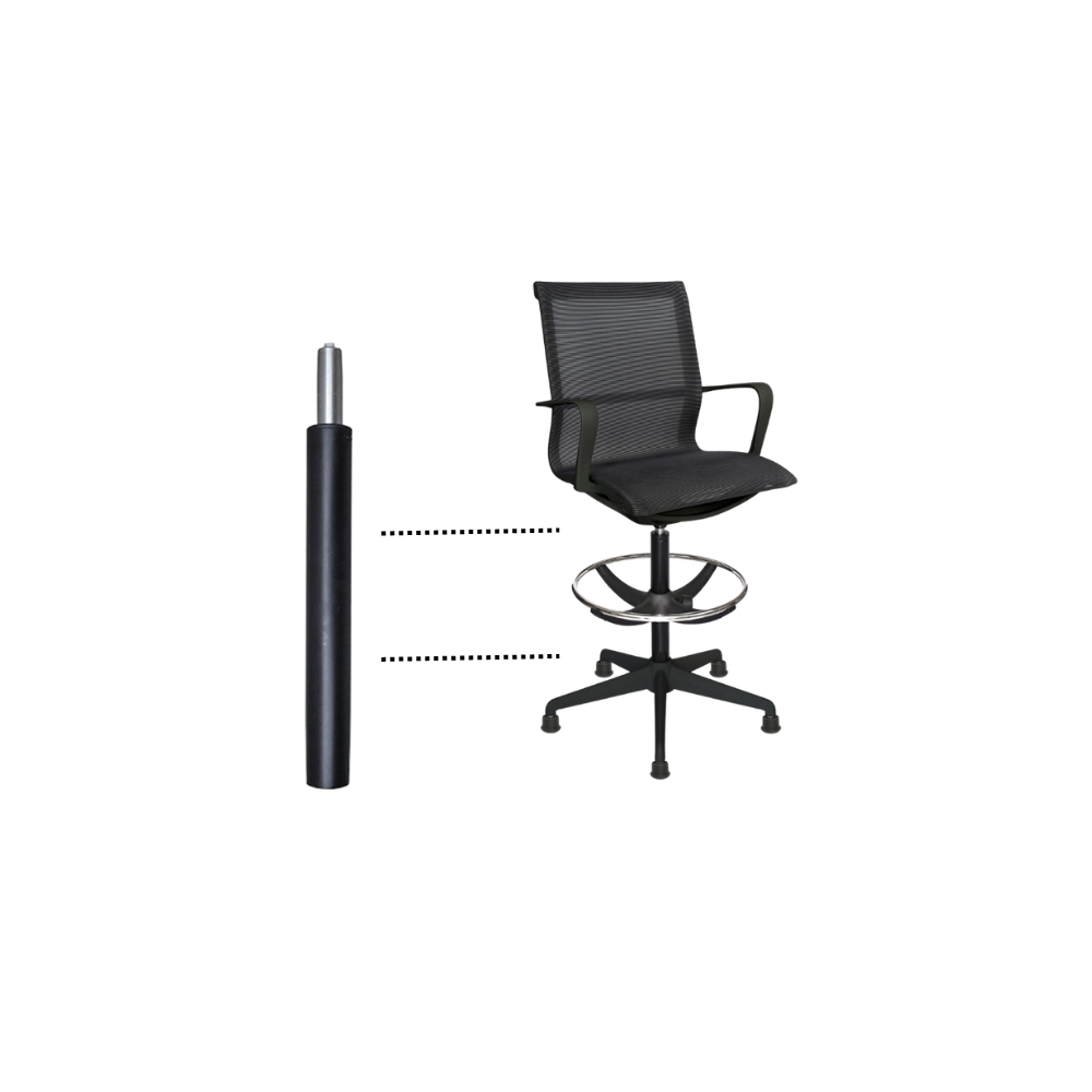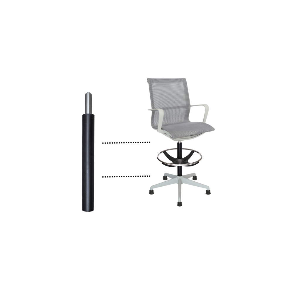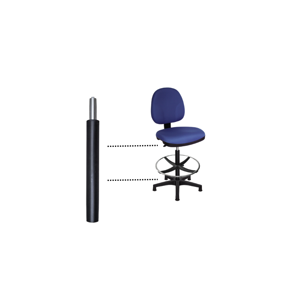 Pistón: pistón neumático que permite ajustar la altura del asiento, con terminado en cromo.