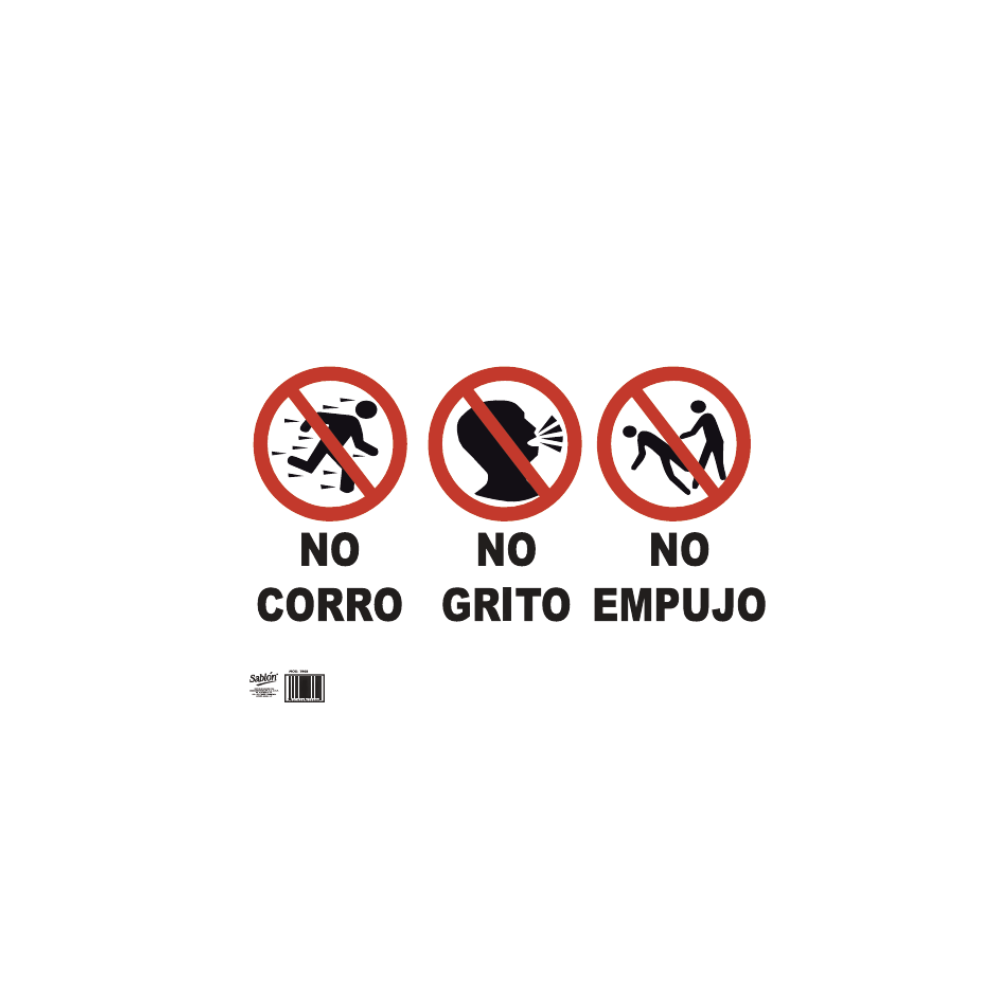 PÓSTER DE AVISO NO CORRO, NO GRITO, NO EMPUJO MARCA SABLÓN 7964