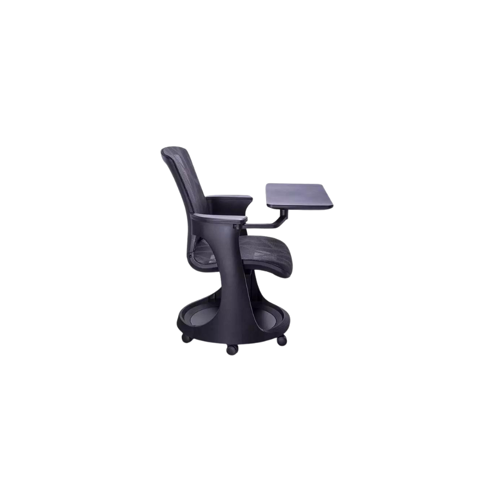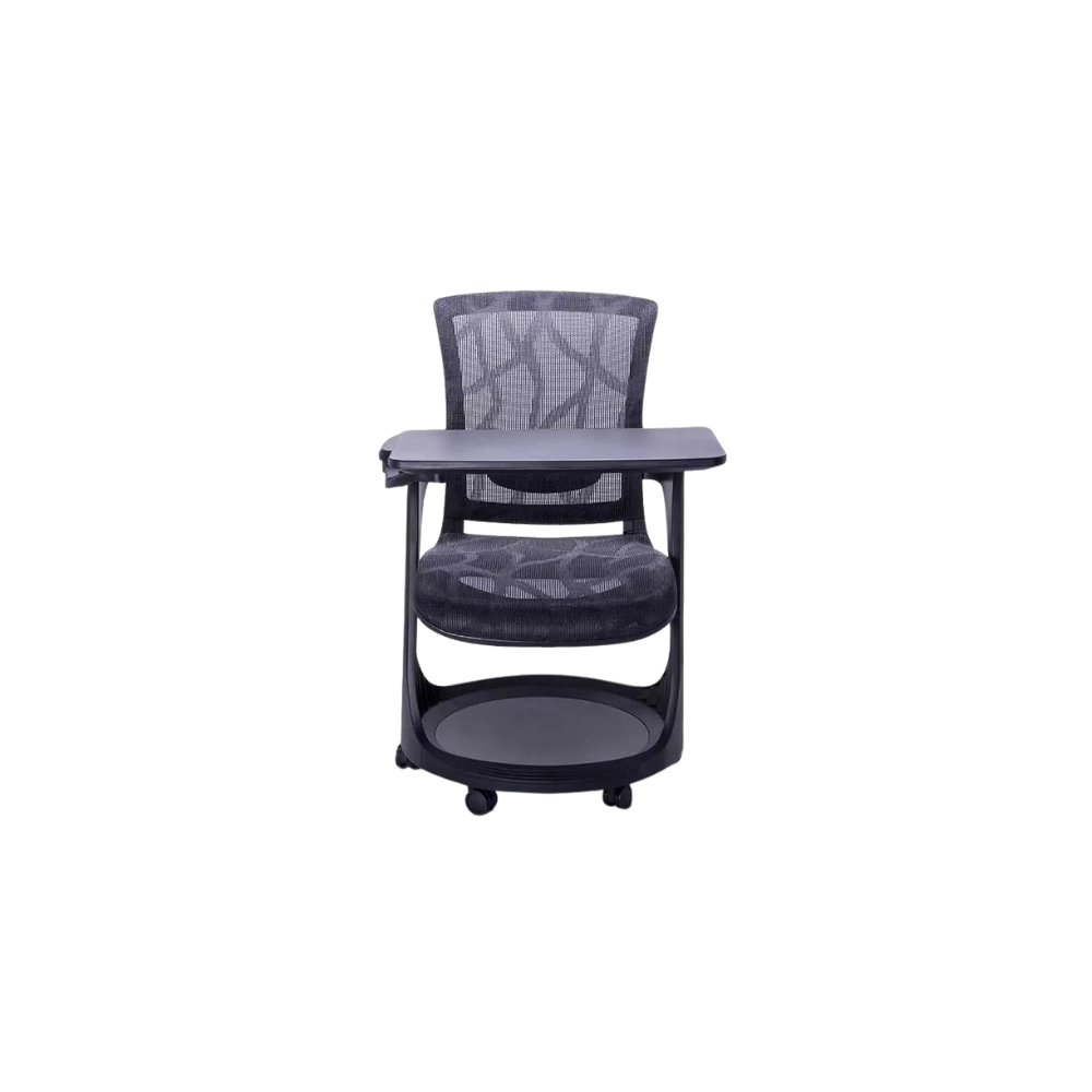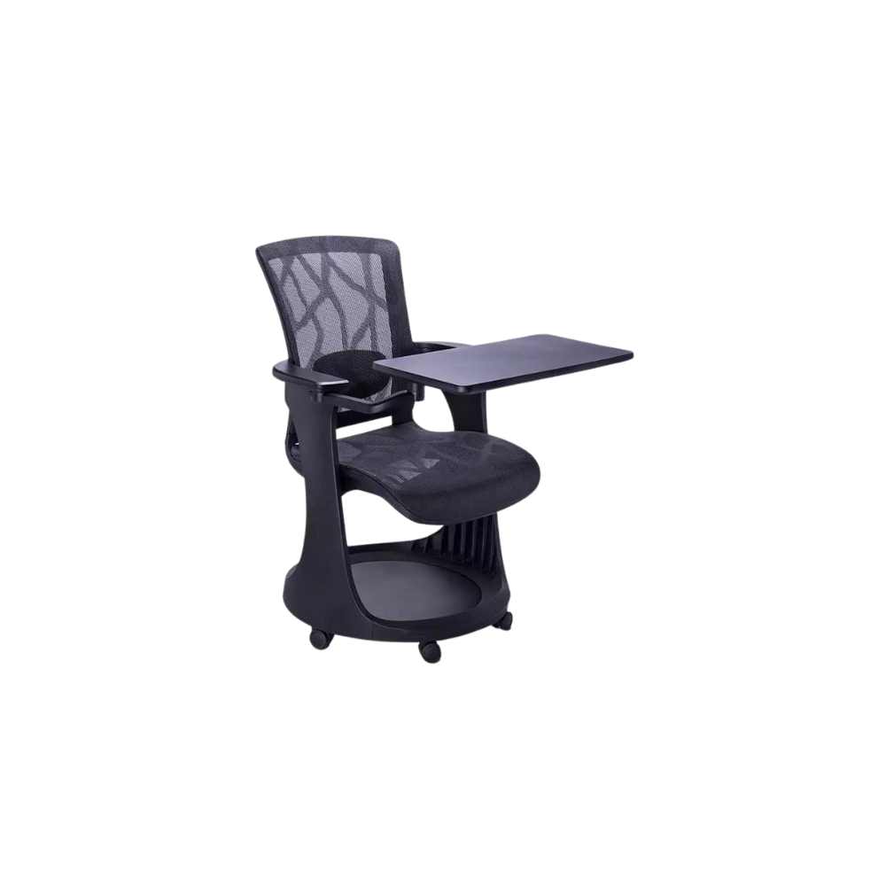 Respaldo y asiento: con diseño ergonómico en mesh de nylon con soporte lumbar, tableta de escritura multi-posicional.