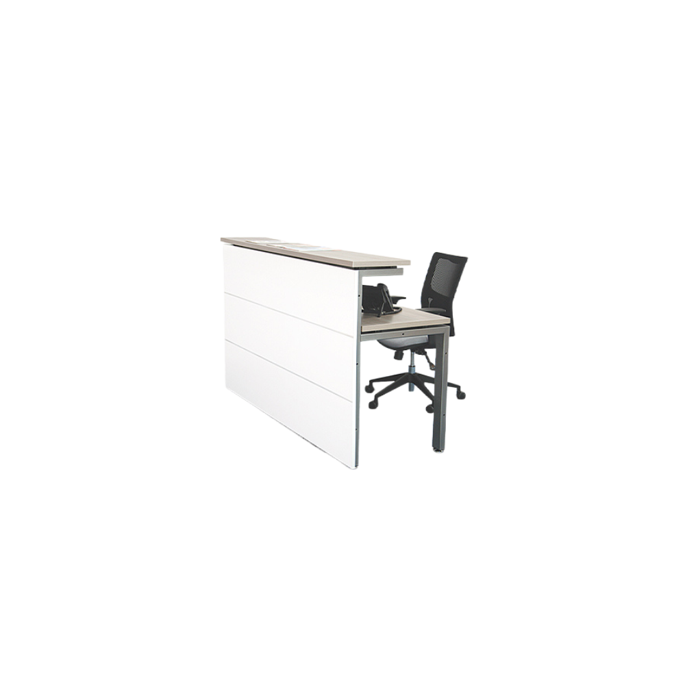 Estructura: escritorio recto para recepción, disponible en color negro y gris.