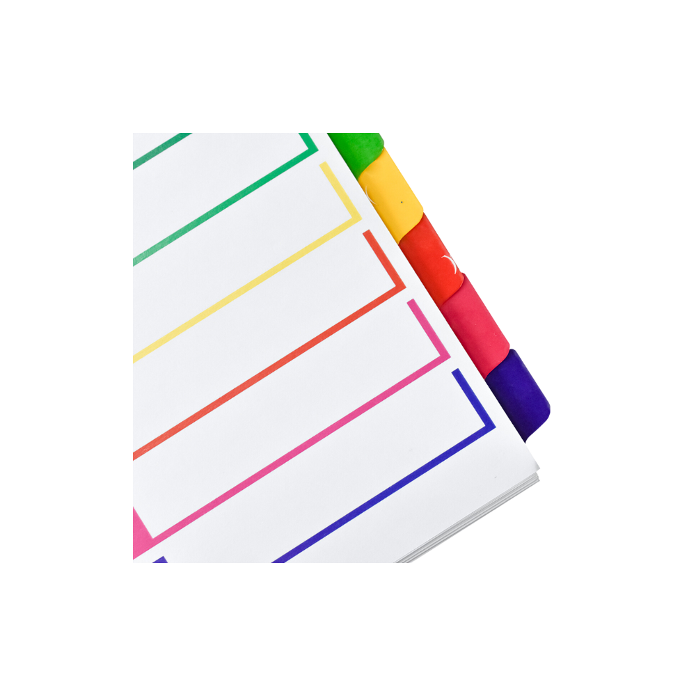 Perforaciones: 5 perforaciones para carpetas de argollas.