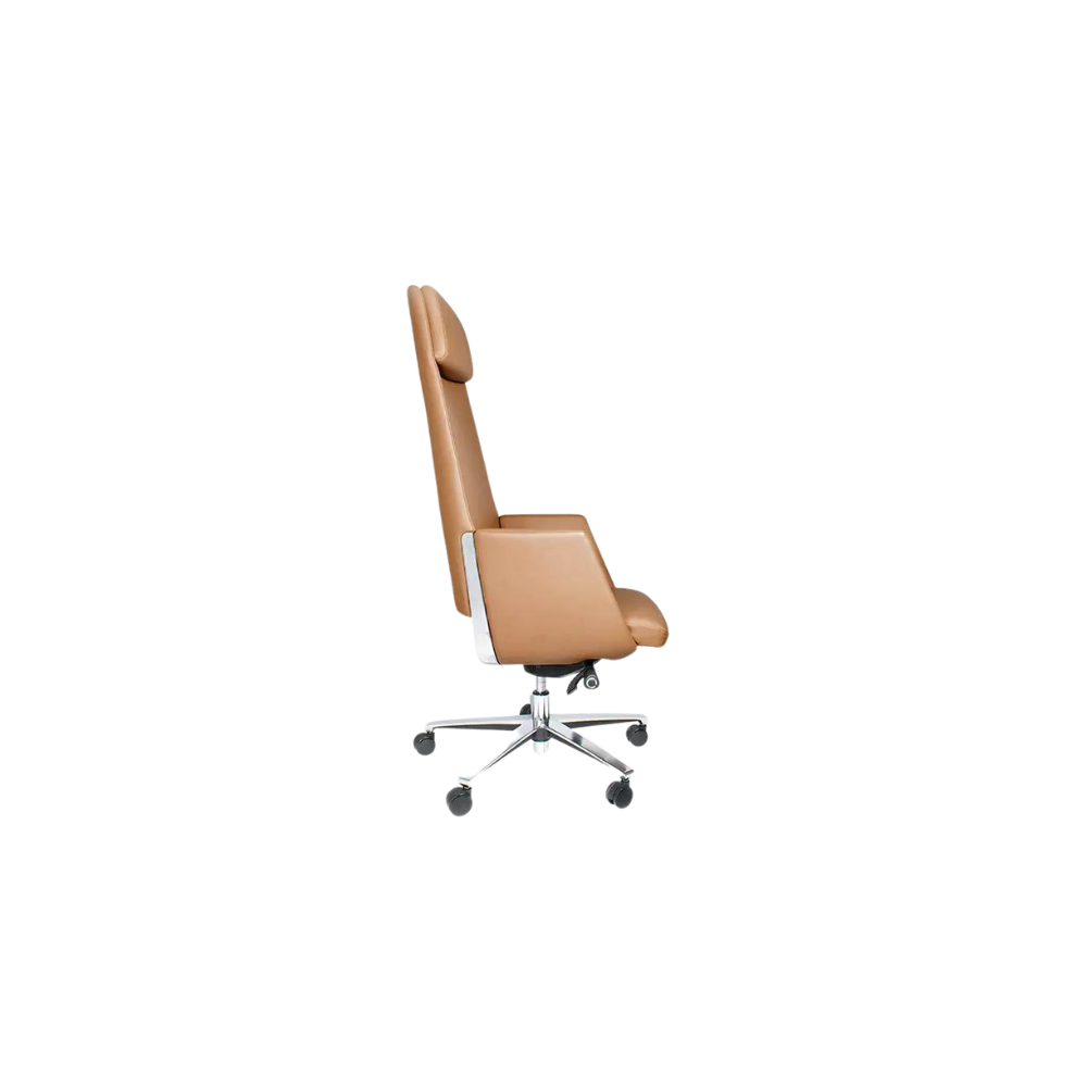 Respaldo: medio, brazos integrales con marco de aluminio pulido.