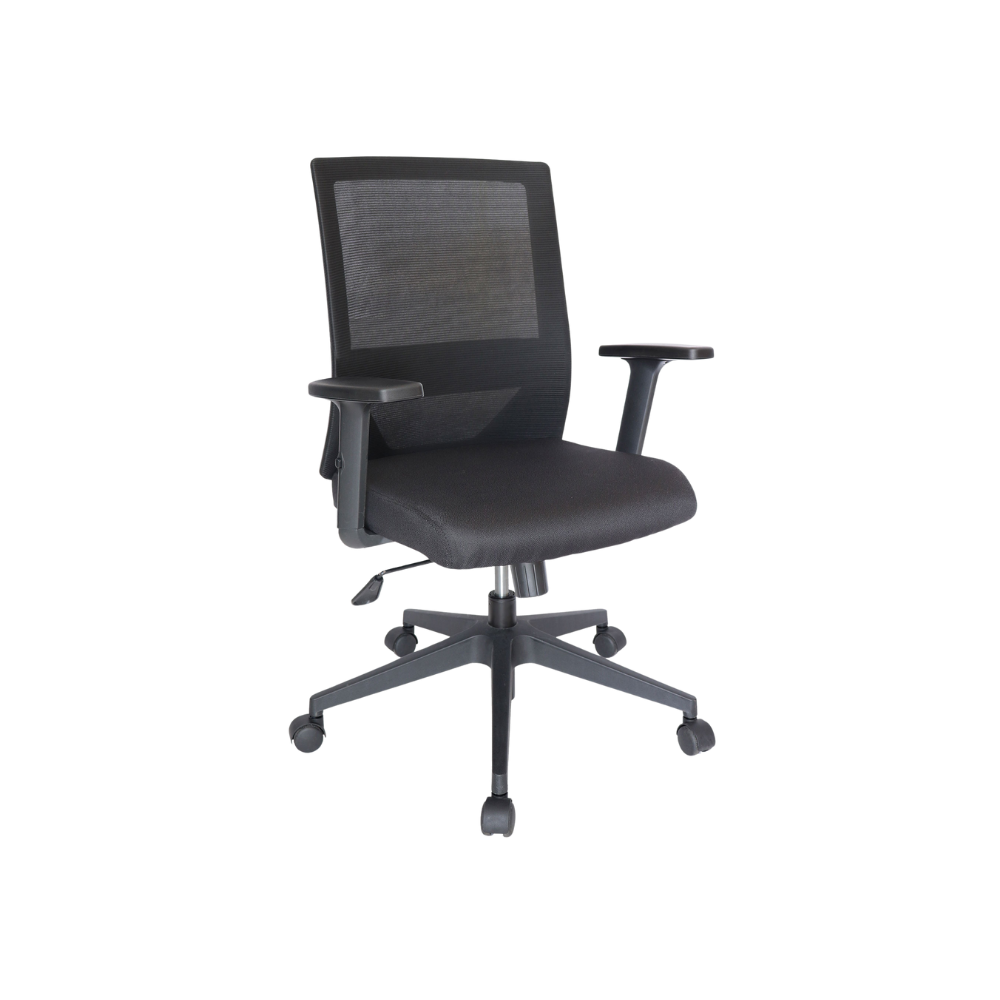 Tapiz: respaldo de malla de color negro y asiento en tela color negro.